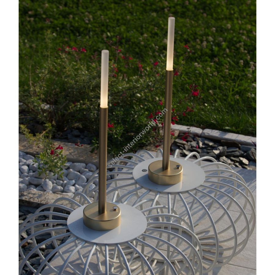 The metal frame is available in the following finishes: brushed gold with pure steel, brushed gold with bronze, brushed gold with corten burnished and brushed gold.