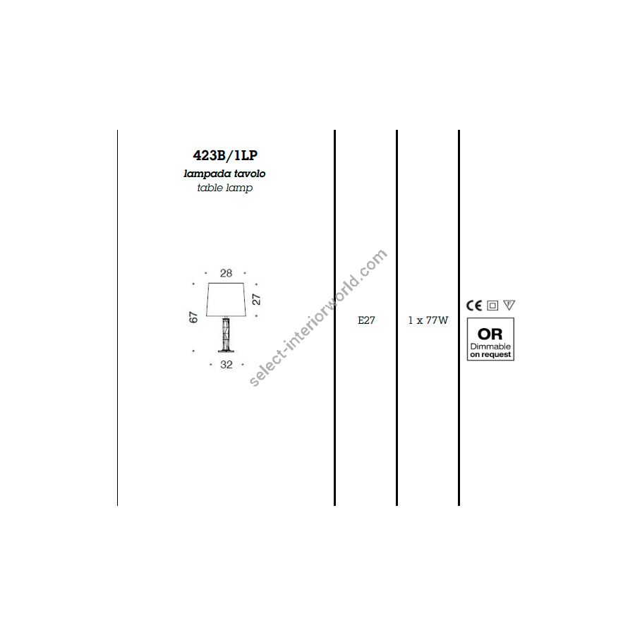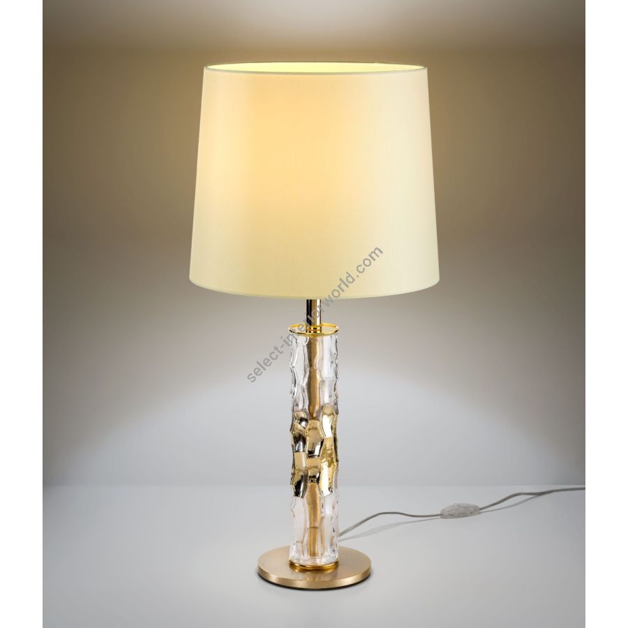Fabric lampshades are available in the following versions: ivory chinette and silver or gold lamé.
