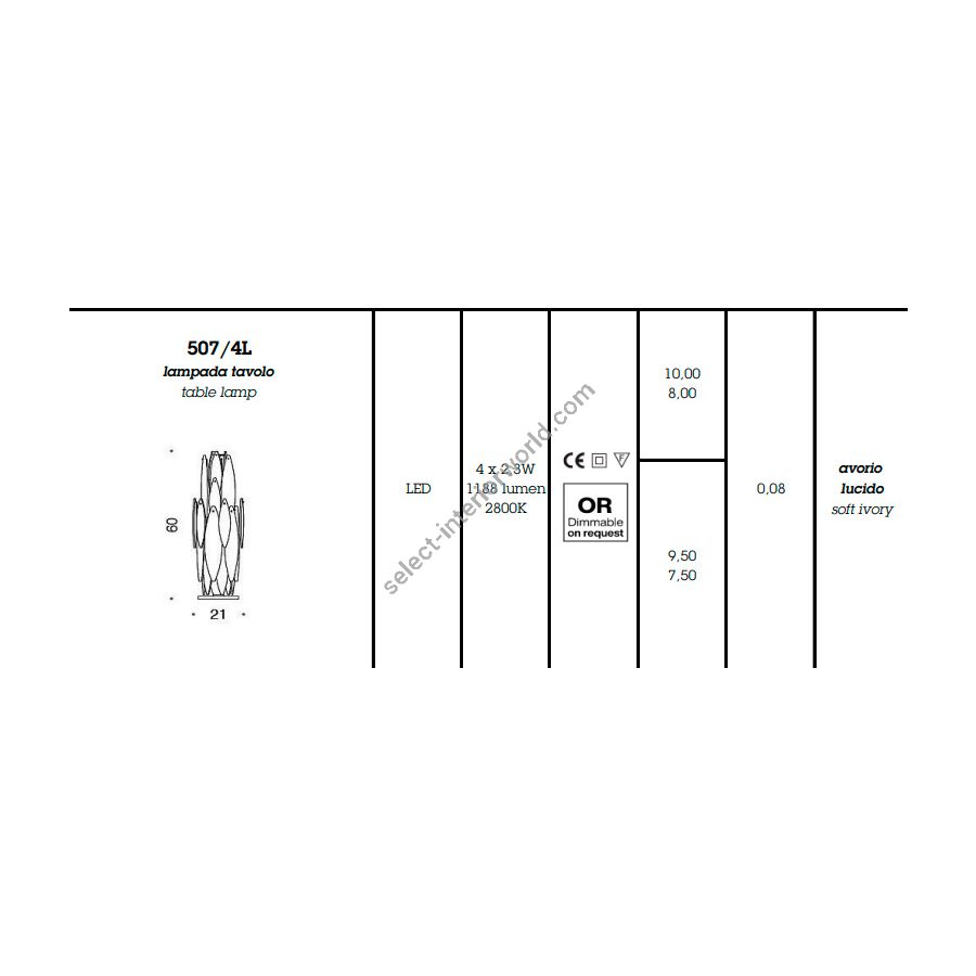 – CRYSTAL: metal frame in soft ivory with leaves of transparents Murano glass.