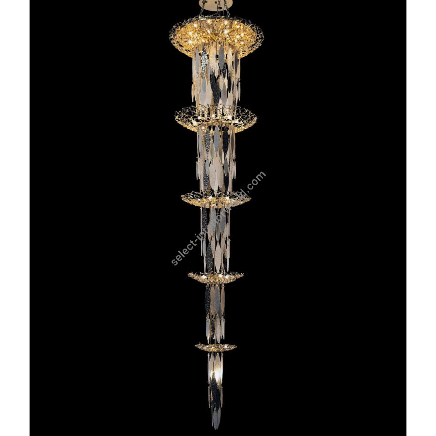The regalness of gold and interwoven metal come together with Murano glass leaves to deliver highly prestigious decorative effects.