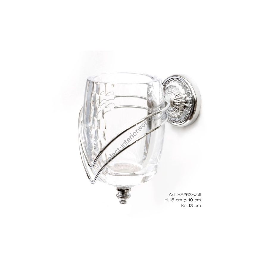 Toothbrush holder on wall in italian hand-cutted crystal and chrome brass. Functional elements that create an extremely elegant, welcoming and high-value bathroom.