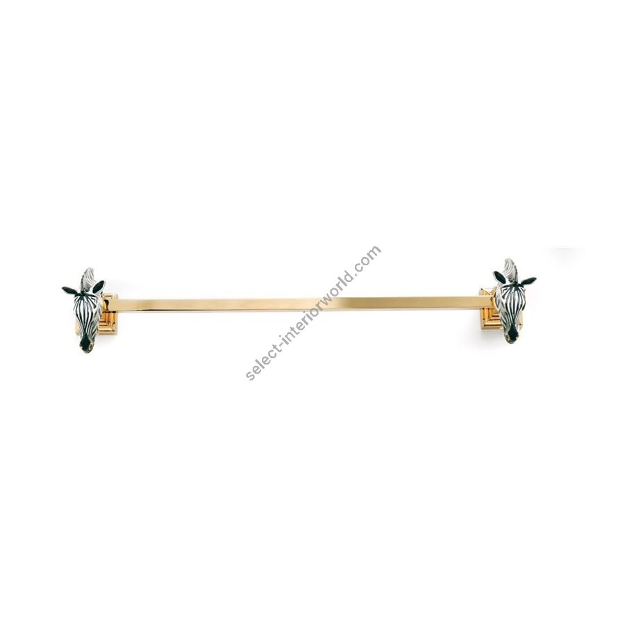 Towel holder in gold 24k with micro casting of enameled brass zebra. Functional elements that create an extremely elegant, welcoming and high-value bathroom.