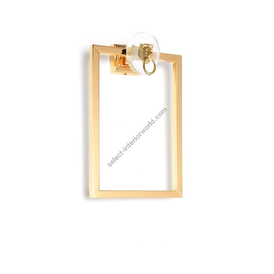 Square Towel holder in polished gold with casting brass Lion and glass medallion. Functional elements that create an extremely elegant, welcoming and high-value bathroom.