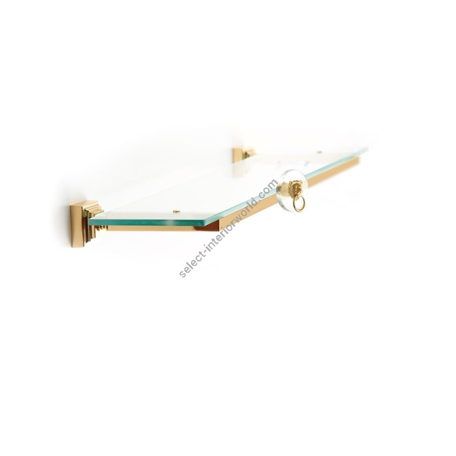 Glass shelf in polished gold with casting brass Lion and glass medallion. Functional elements that create an extremely elegant, welcoming and high-value bathroom.