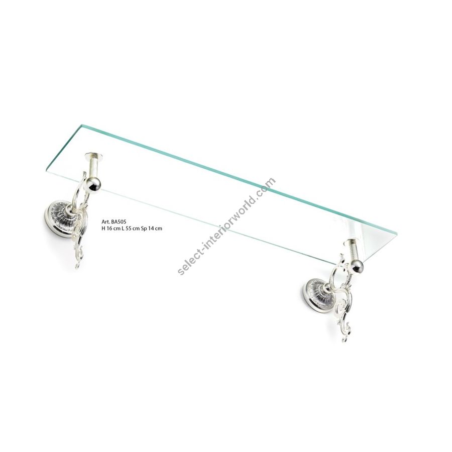 Glass shelf with casting brass supports. Functional elements that create an extremely elegant, welcoming and high-value bathroom.