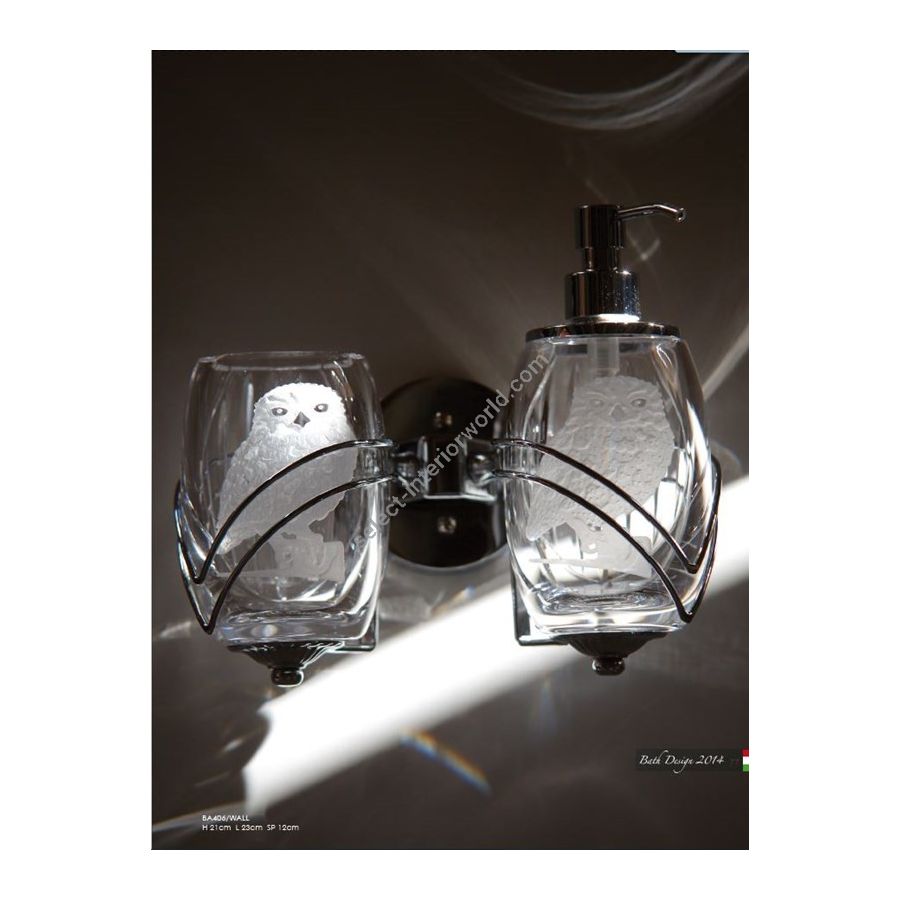 Italian Crystal soap dispenser with hand-engraved owl figure. Functional elements that create an extremely elegant, welcoming and high-value bathroom.