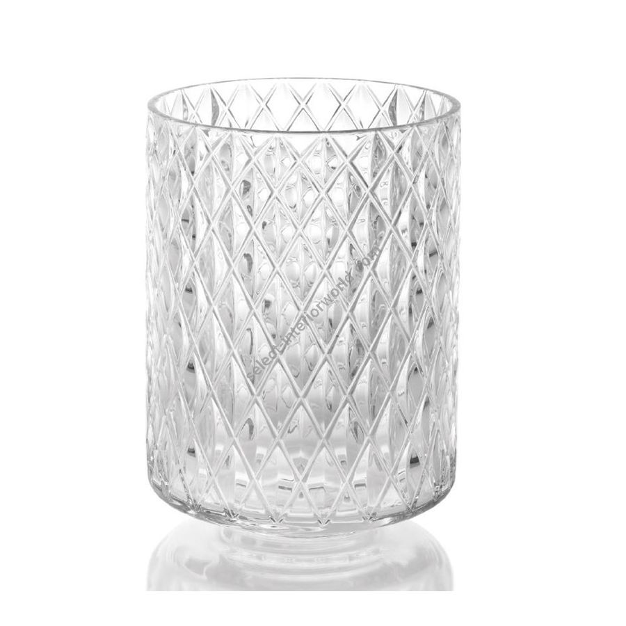Italian hand-cut crystal set with three-dimensional rhombus pattern. Waste basket. Functional elements that create an extremely elegant, welcoming and high-value bathroom.