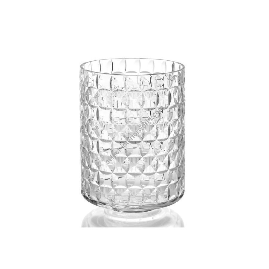 Circle Set, Italian hand-cut crystal set with three-dimensional circles pattern. Crystal PB24% Waste Basket. Functional elements that create an extremely elegant, welcoming and high-value bathroom.