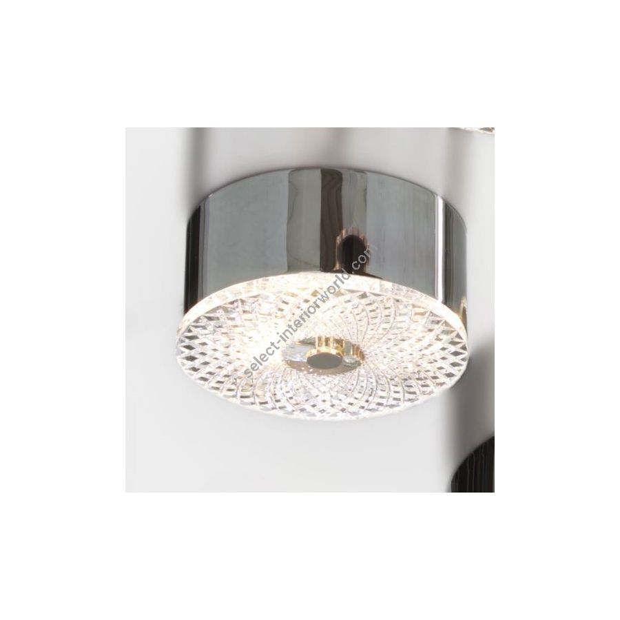 Ceiling lamp with italian crystal disk "rombus" 3D cut. Lighting item that diffuses the light with great effect in the surrounding environement creating a warm and welcoming atmosphere.