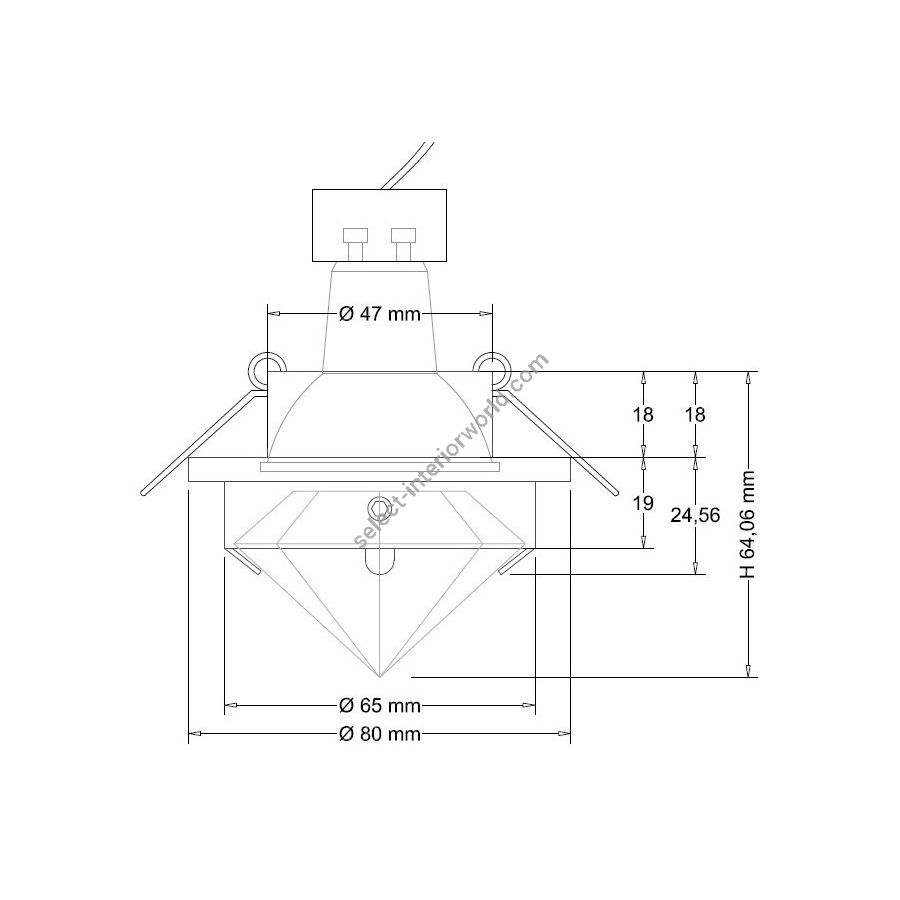 Size:D. ext 75 mm Max deep with bulbs 110 mm