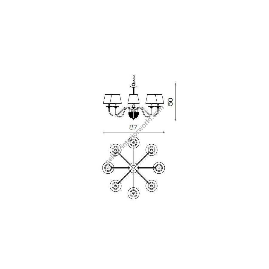 Bulbs: 8 x E14 x 40W| Dimensions (HxWxD): | cm: 50x87x16 / inch: 19.69"x34.25"x6.3" |