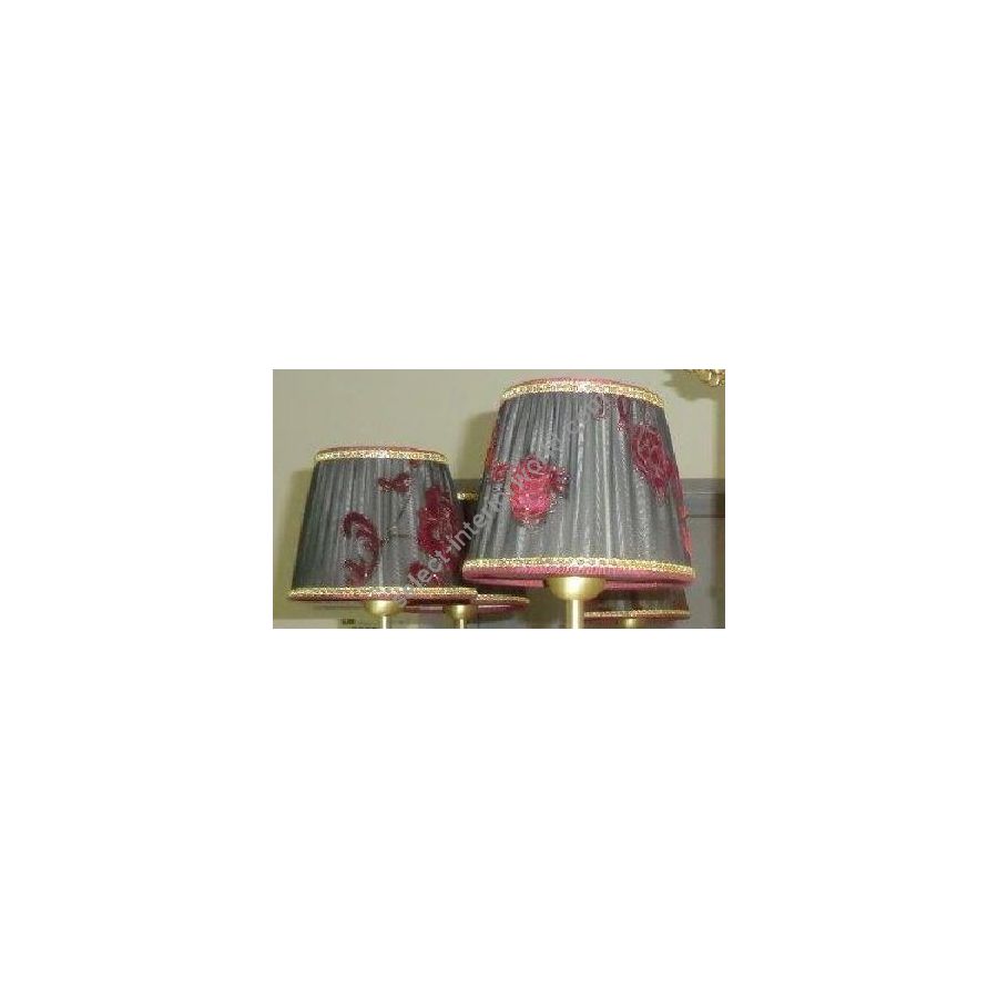 Chandelier in brass with application of strass and fabric lampshades. Lighting item that diffuses the light with great effect in the surrounding environement creating a warm and welcoming atmosphere.