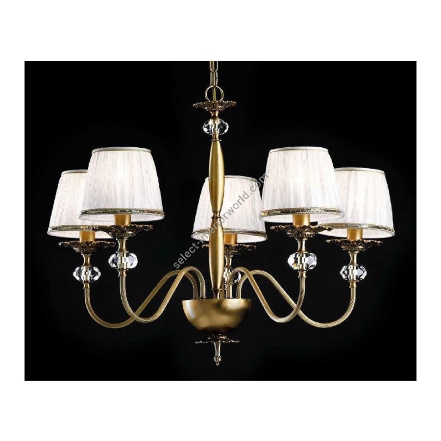 Chandelier in OV with Swarovski® inserts and silk lampshades. Lighting item that diffuses the light with great effect in the surrounding environement creating a warm and welcoming atmosphere.