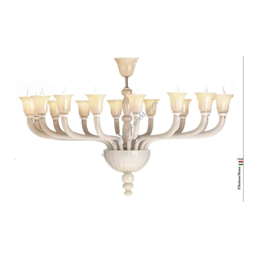 Chandelier with Murano Glass White/gold. Lighting item that diffuses the light with great effect in the surrounding environement creating a warm and welcoming atmosphere.