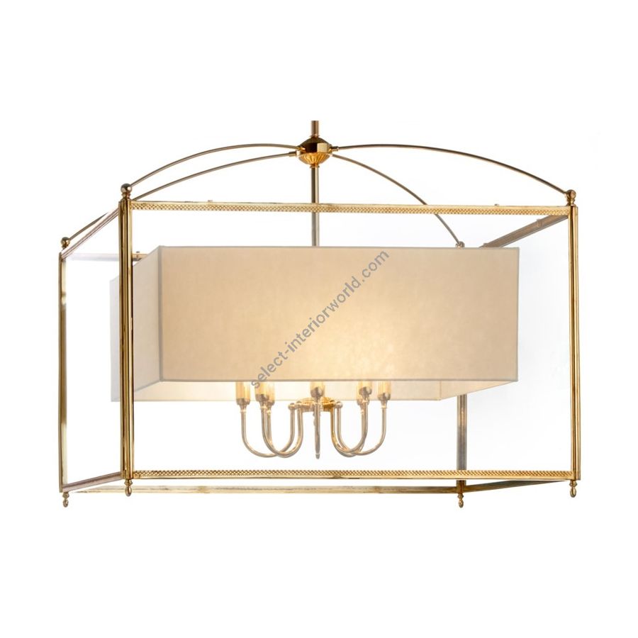 Rectangoular lantern. Lighting item that diffuses the light with great effect in the surrounding environement creating a warm and welcoming atmosphere.