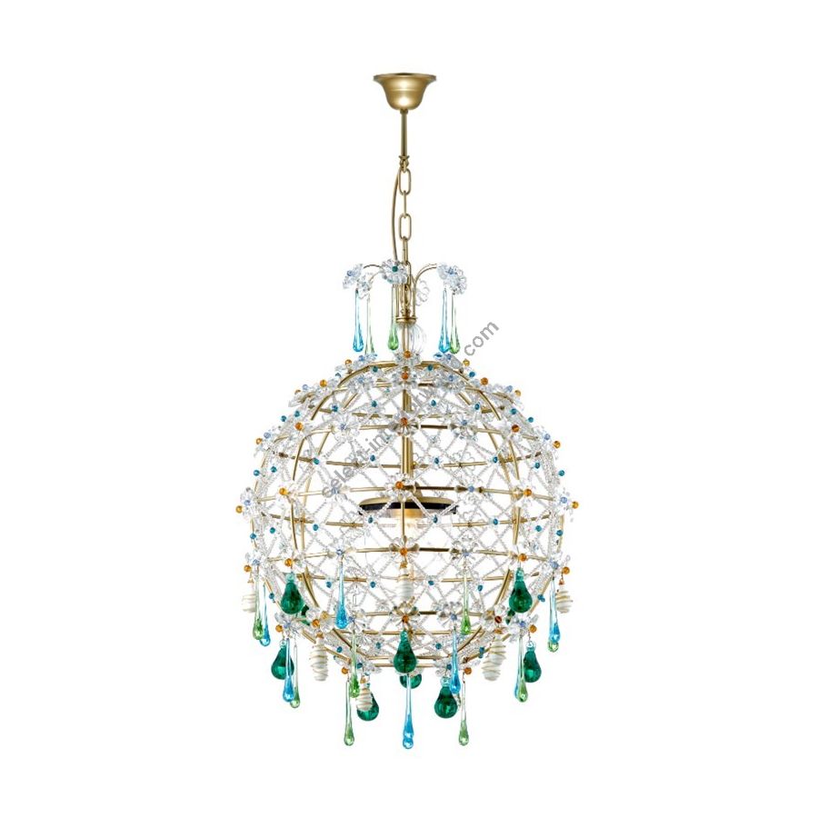 Chandelier Sphere with Murano elements (available IP44). Lighting item that diffuses the light with great effect in the surrounding environement creating a warm and welcoming atmosphere.