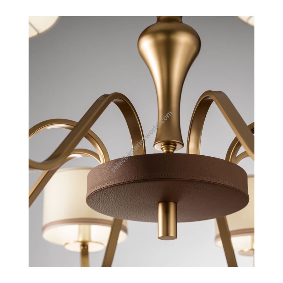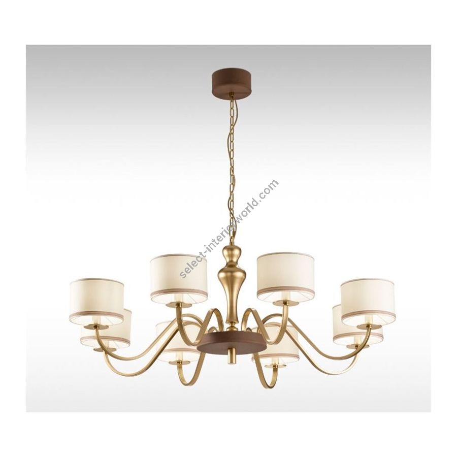 8-light chandelier with a classic and refined design, crafted in metal with a matte gold painted finish. The graceful arms support ivory fabric lampshades that diffuse a soft, enveloping light. A highly elegant decorative piece, ideal for dining rooms, living areas, and representative spaces, combining tradition and contemporary taste with timeless style.