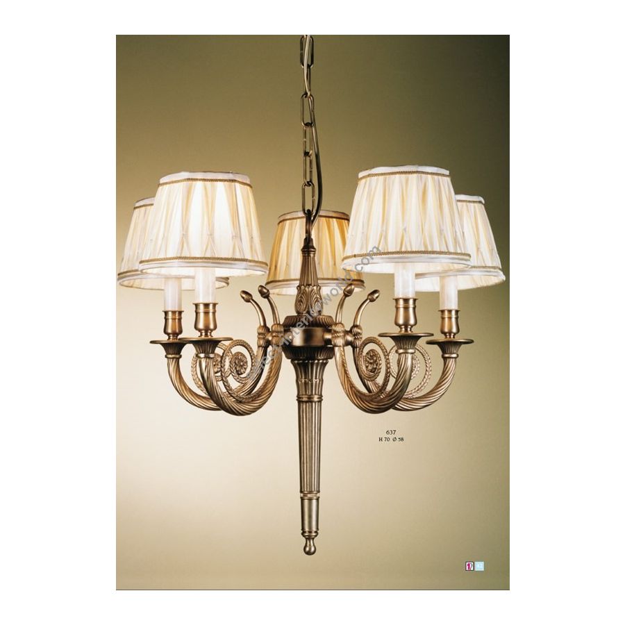 Baroque suspension with 5 lights, conical lampshade, Lighting body that diffuses the light into the surrounding environment with great effect, creating a warm and welcoming atmosphere.