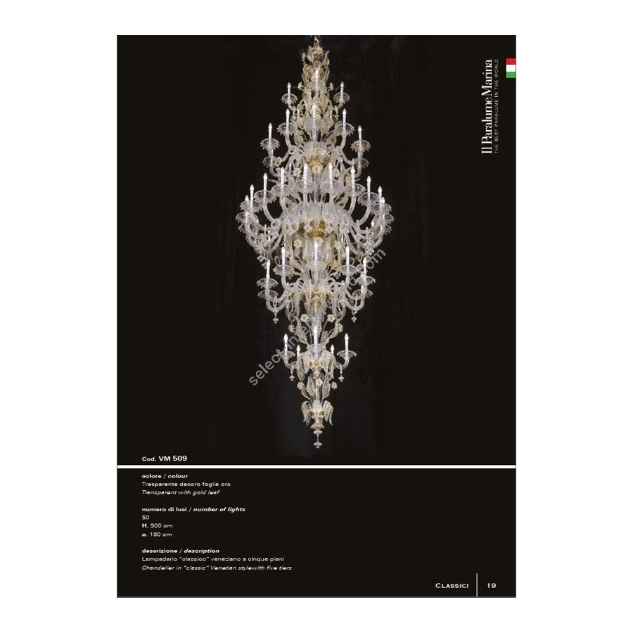 "Classic" Venetian chandelier with five floors, 50 lights. Lighting fixture that diffuses the light into the surrounding environment with great effect, creating a warm and welcoming atmosphere.