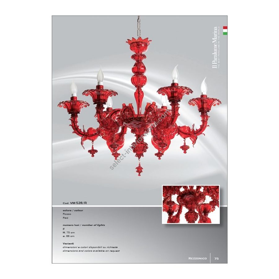 6 lights red chandelier. Lighting fixture that diffuses the light into the surrounding environment with great effect, creating a warm and welcoming atmosphere.