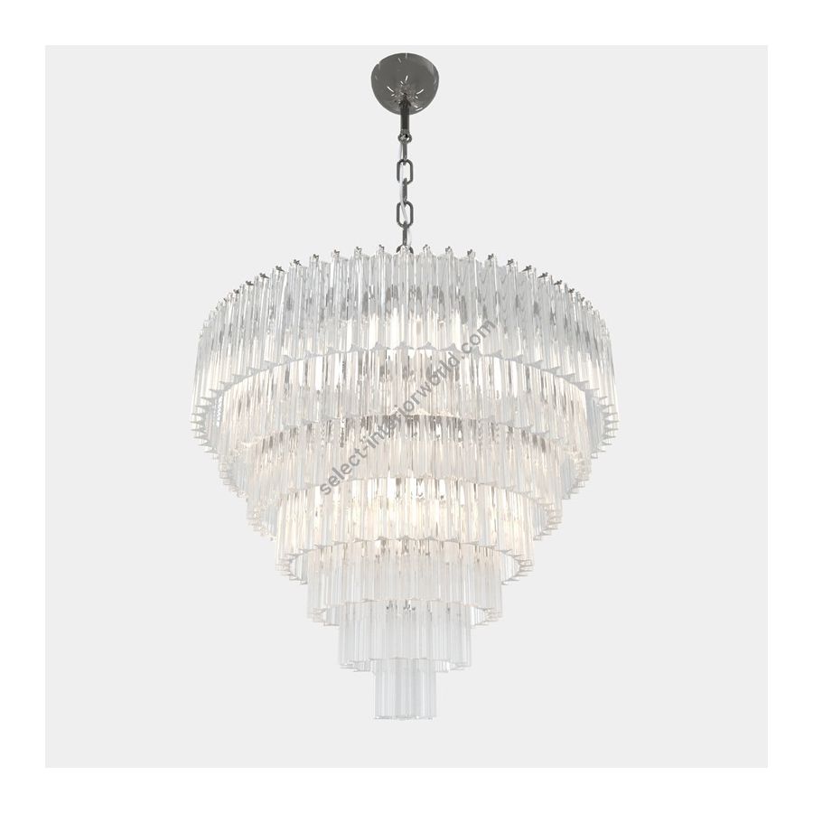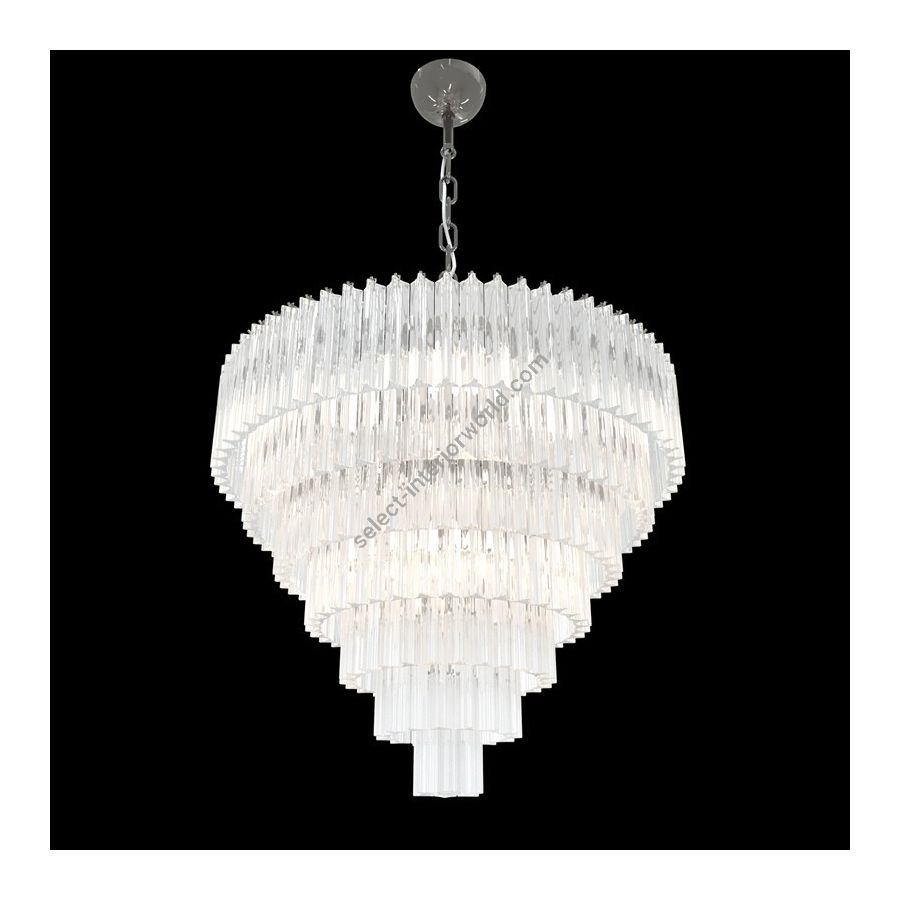 Triedro Murano Glass chandelier clear color. Lighting item that diffuses the light with great effect in the surrounding environement creating a warm and welcoming atmosphere.