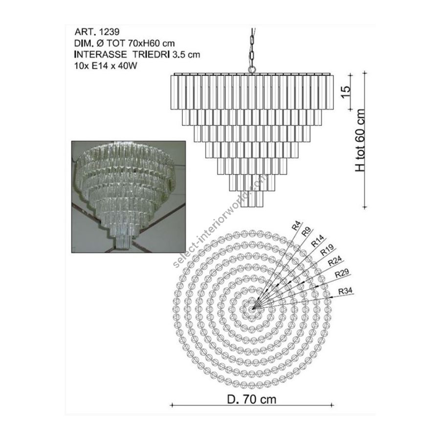 Bulbs: 10 x E14 x 40W| Dimensions (HxWxD): | cm: 60x70 / inch: 23.62"x27.56" |