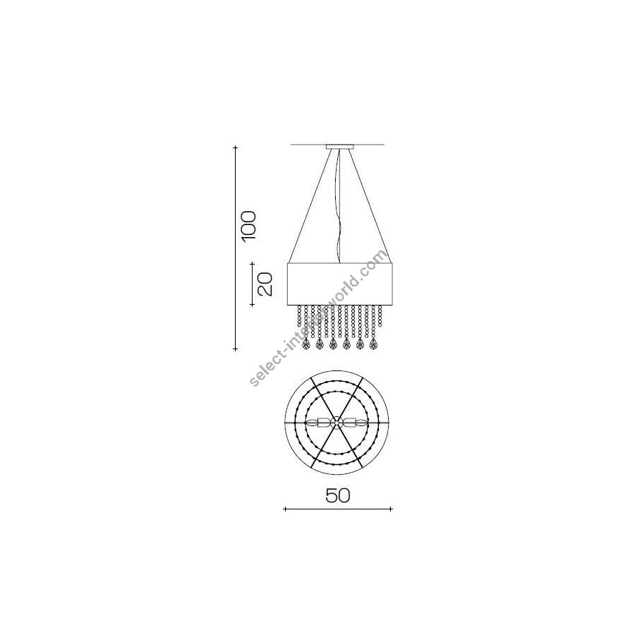 Chandelier with lampshade and Asfour crystals. Lighting item that diffuses the light with great effect in the surrounding environement creating a warm and welcoming atmosphere.