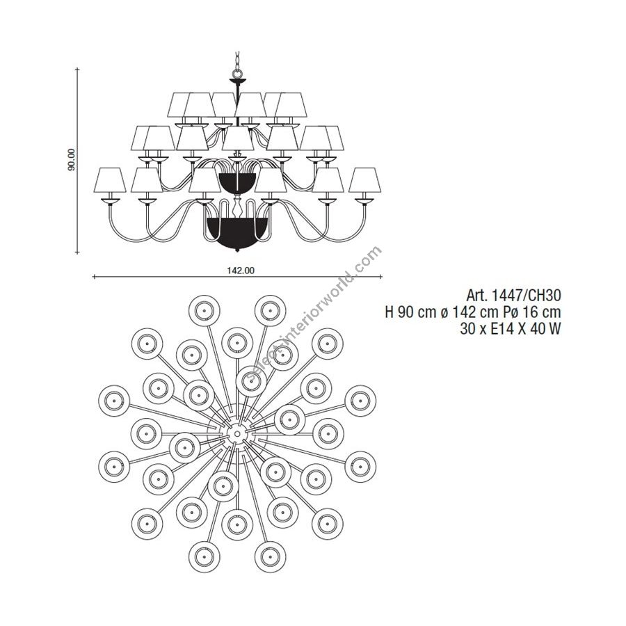 Bulbs: 30 x E14 X 40 W| Dimensions (HxWxD): | cm: 90x142x16 / inch: 35.43"x55.91"x6.3" |