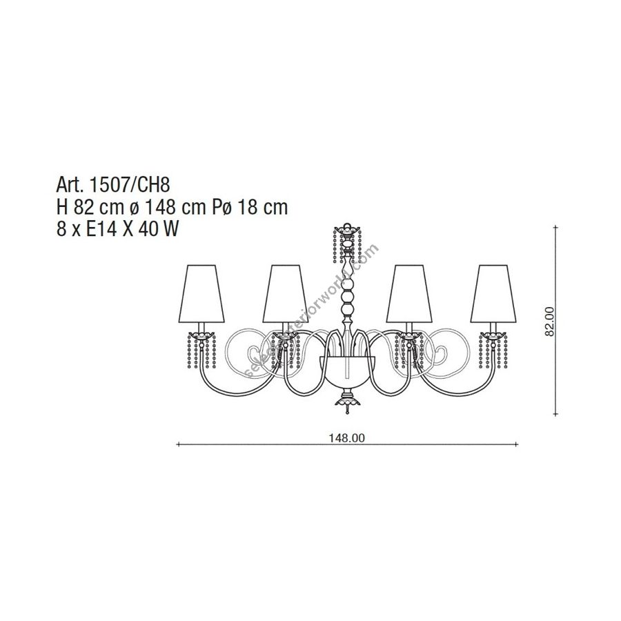 Bulbs: 8 x E14 X 40 W| Dimensions (HxWxD): | cm: 82x148x18 / inch: 32.28"x58.27"x7.09" |