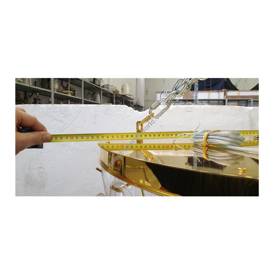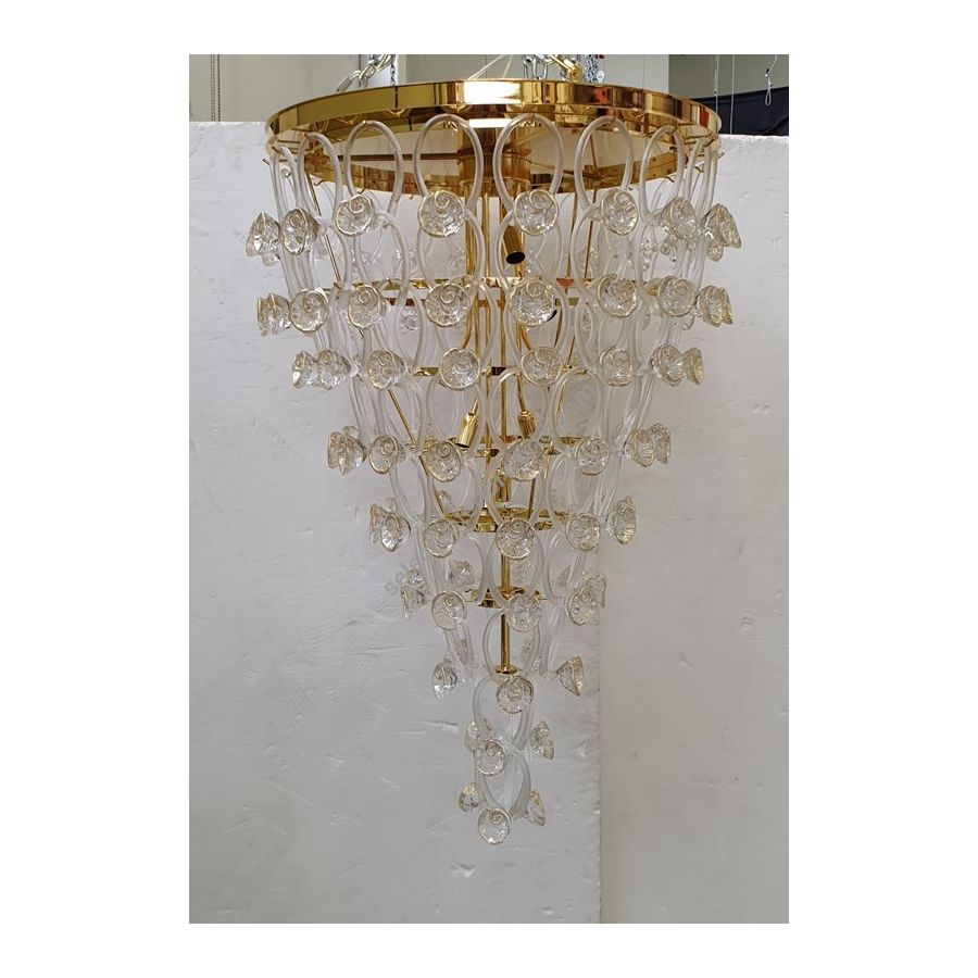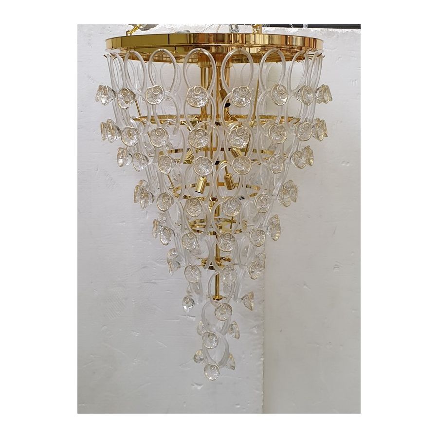 Chandelier made with transparent ang gold roses made of Murano glass