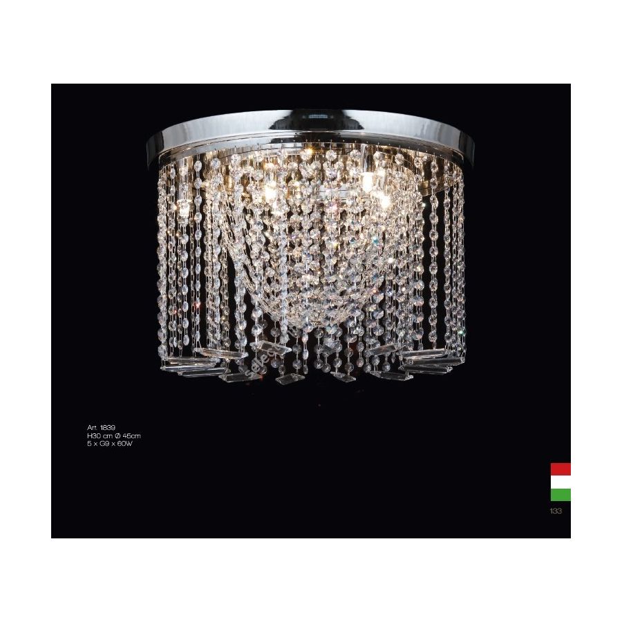 Ceiling lamp with clear Asfour crystals. Lighting item that diffuses the light with great effect in the surrounding environement creating a warm and welcoming atmosphere.