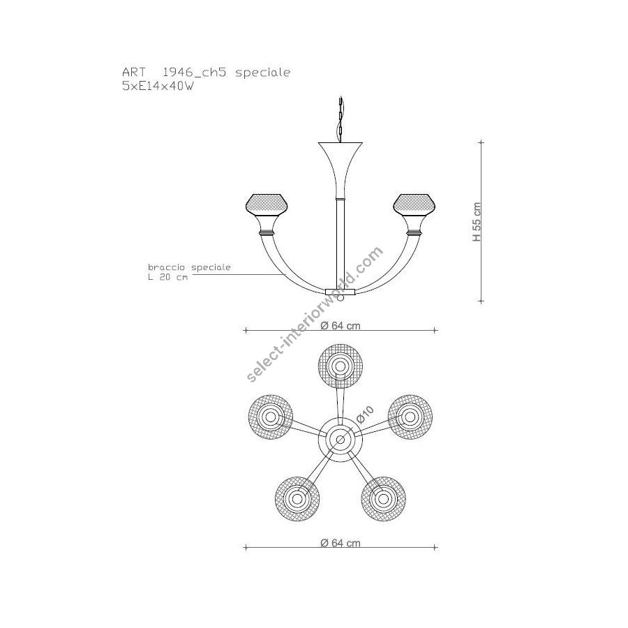 5 lights Chandelier with Crystal lampshades. Lighting item that diffuses the light with great effect in the surrounding environement creating a warm and welcoming atmosphere.