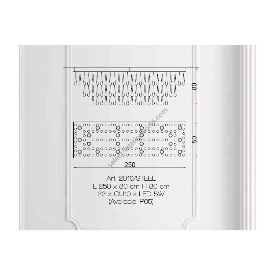 Bulbs: 22 x GU 10 x 5W Led (buls not included)| Dimensions (HxWxD): | cm: 80x250x80 / inch: 31.50x98.43x31.50 |