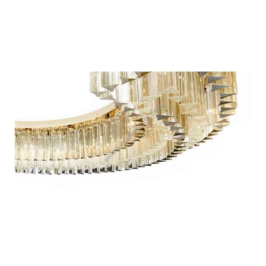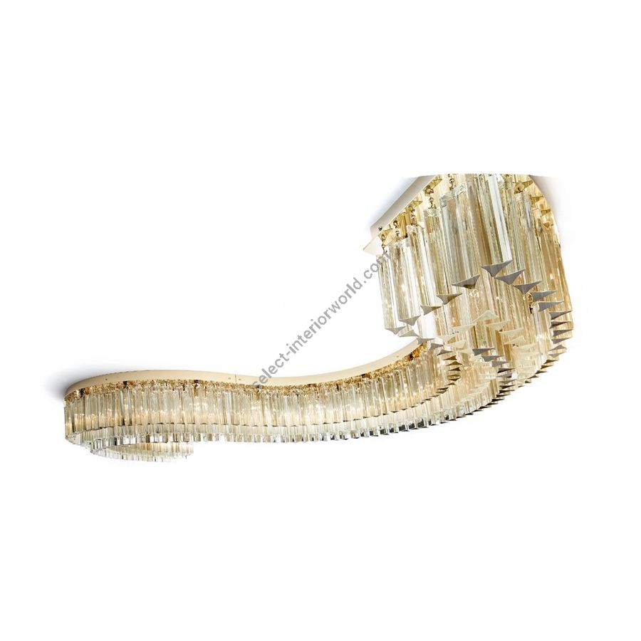 Ceiling lamp with trihedrons Murano Glass champagne and transparent color. Lighting item that diffuses the light with great effect in the surrounding environement creating a warm and welcoming atmosphere.