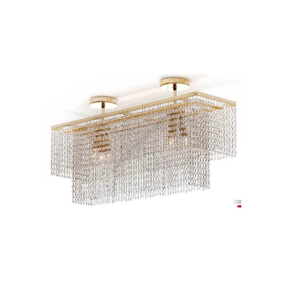 Ceiling lamp rectangular with transparent Asfour® crystals. Lighting item that diffuses the light with great effect in the surrounding environement creating a warm and welcoming atmosphere.