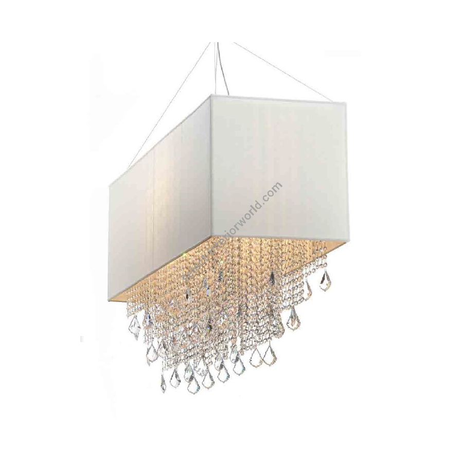 Chandelier + rectangular lampshade with Trasparent Crystal. Lighting item that diffuses the light with great effect in the surrounding environement creating a warm and welcoming atmosphere.