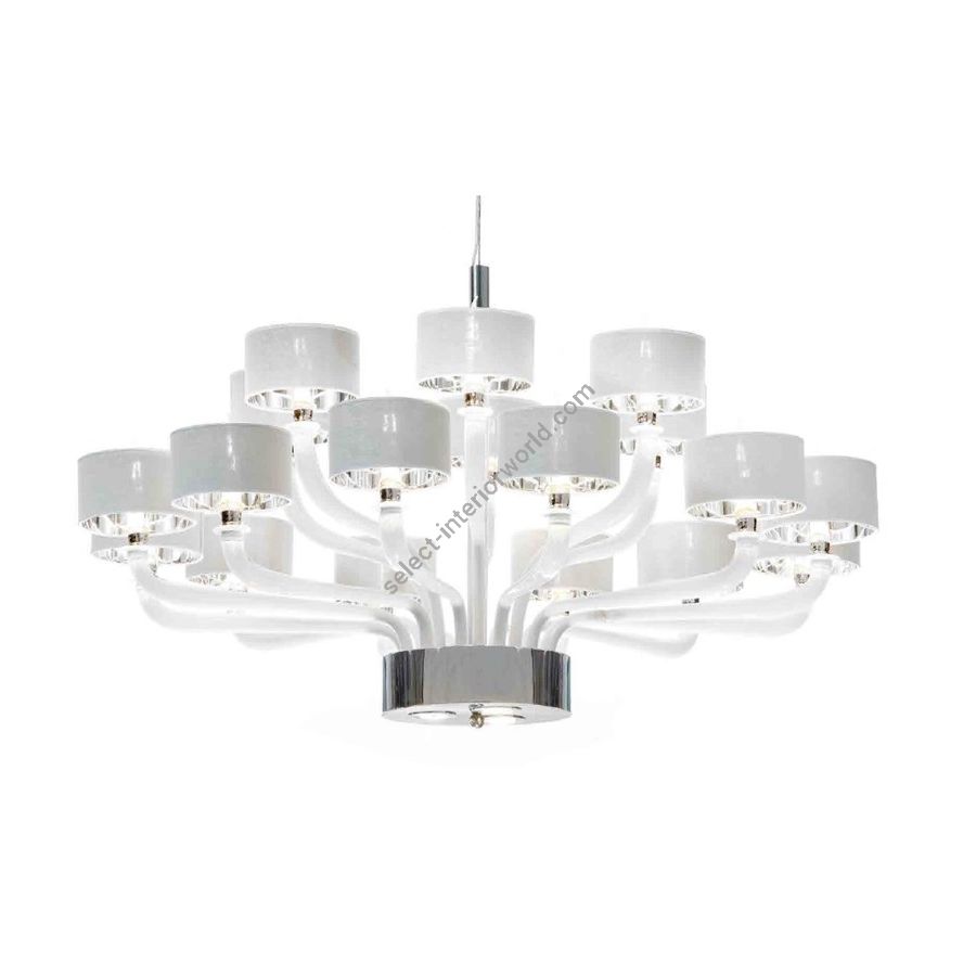 Modern Chandelier in white Murano Glass. Lighting item that diffuses the light with great effect in the surrounding environement creating a warm and welcoming atmosphere.
