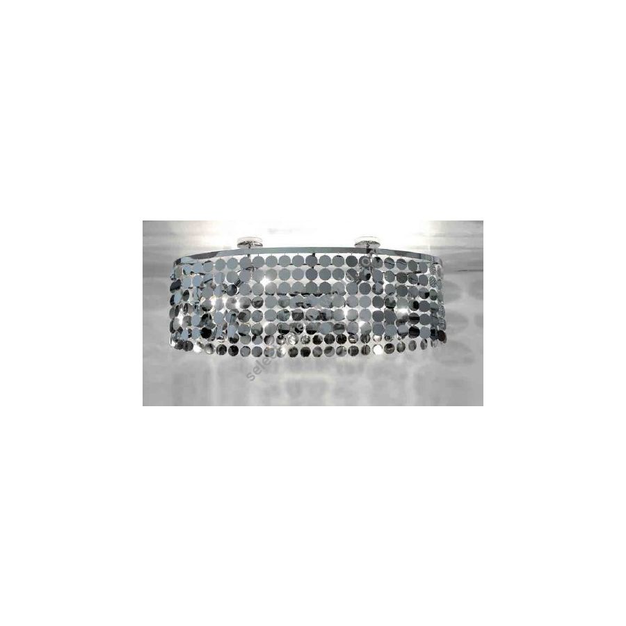 Ceiling lamp with metal discs. Lighting item that diffuses the light with great effect in the surrounding environement creating a warm and welcoming atmosphere.