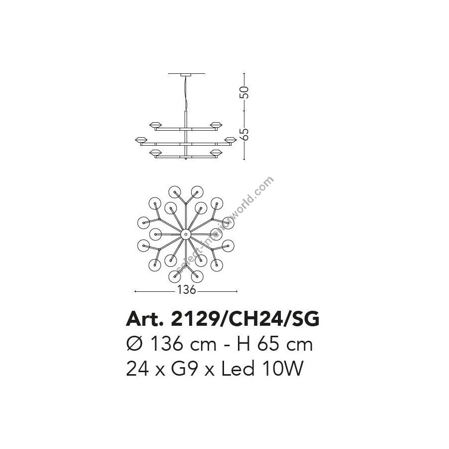 Bulbs: 24 x G9 x Led 10W| Dimensions (HxWxD): | cm: 65x136 / inches: 25.59"x53.54" |