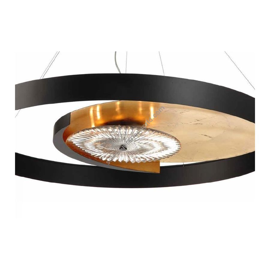 "Eye" collection, Ring in matt black metal with gold leaf lens and diffuser in Italian lead crystal entirely hand-milled. Lighting item that diffuses the light with great effect in the surrounding environement creating a warm and welcoming atmosphere.