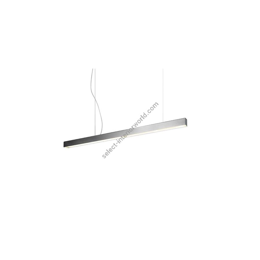 Polished Nikel Square metal bar with LED lighting and polycarbonate diffuser - Strip led 17 W/m ( tot 34W-1750 lumen) + internal power supply to the bar, steel cable on ceiling. Lighting item that diffuses the light with great effect in the surrounding environement creating a warm and welcoming atmosphere.