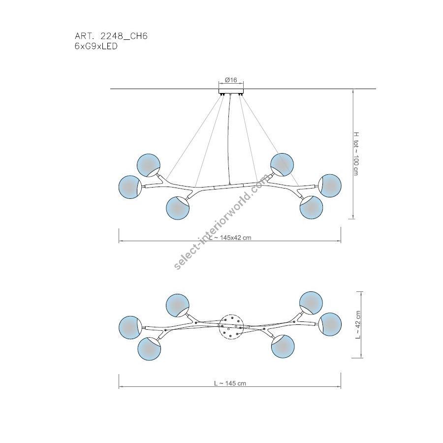 | Size | L 145 x 42 cm H min 15 cm H tot with steel cable 100cm Kg 15 |
