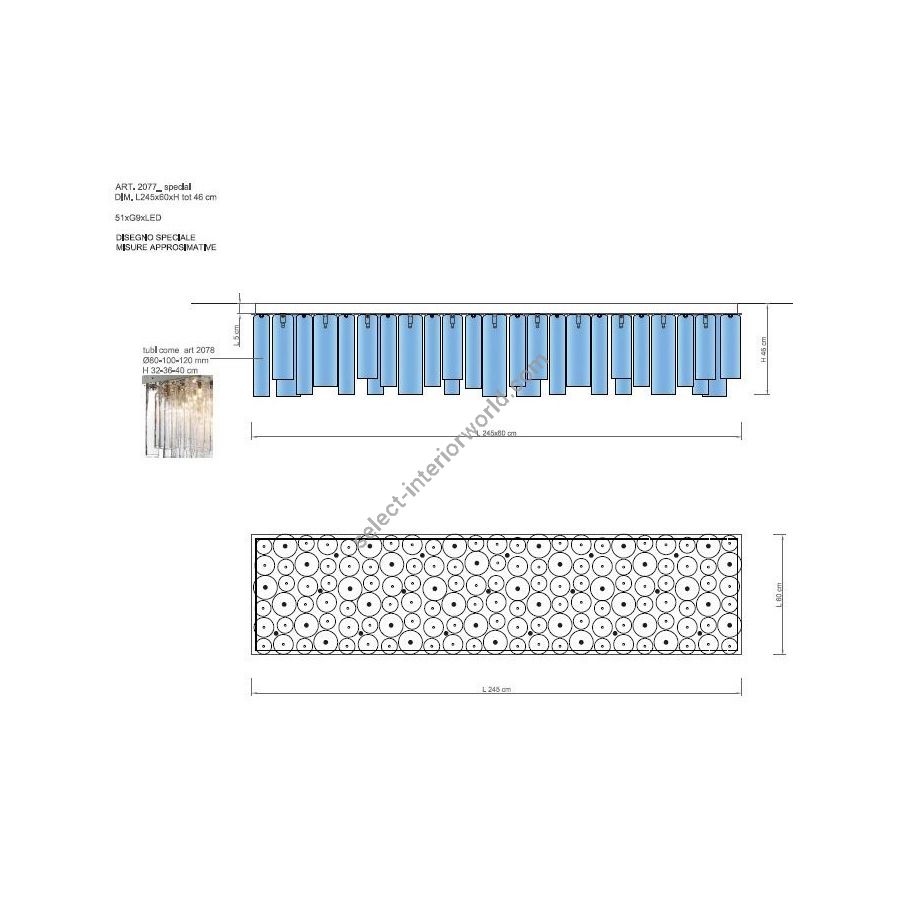Bulbs: 51 x G9 (bulbs not included)| Dimensions (HxWxD): | cm: 60x245x60 / inches: 23.62"x96.46"x23.62" |