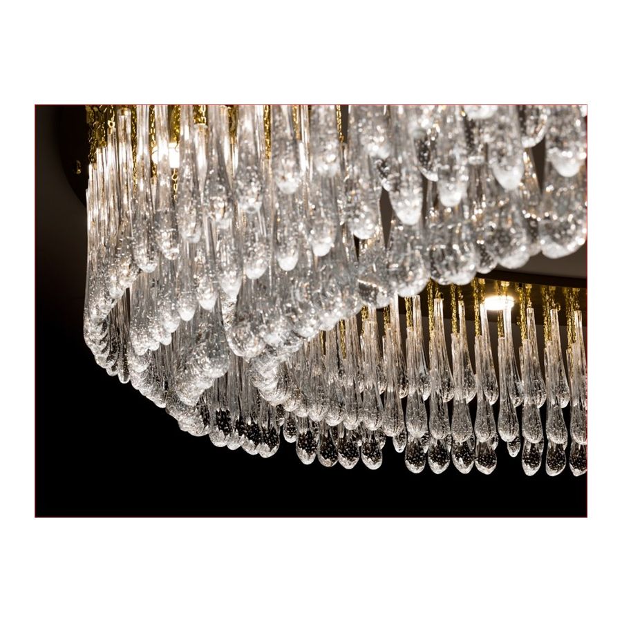 "Oval Chandelier" ceiling lamp with Murano Drops Glass.