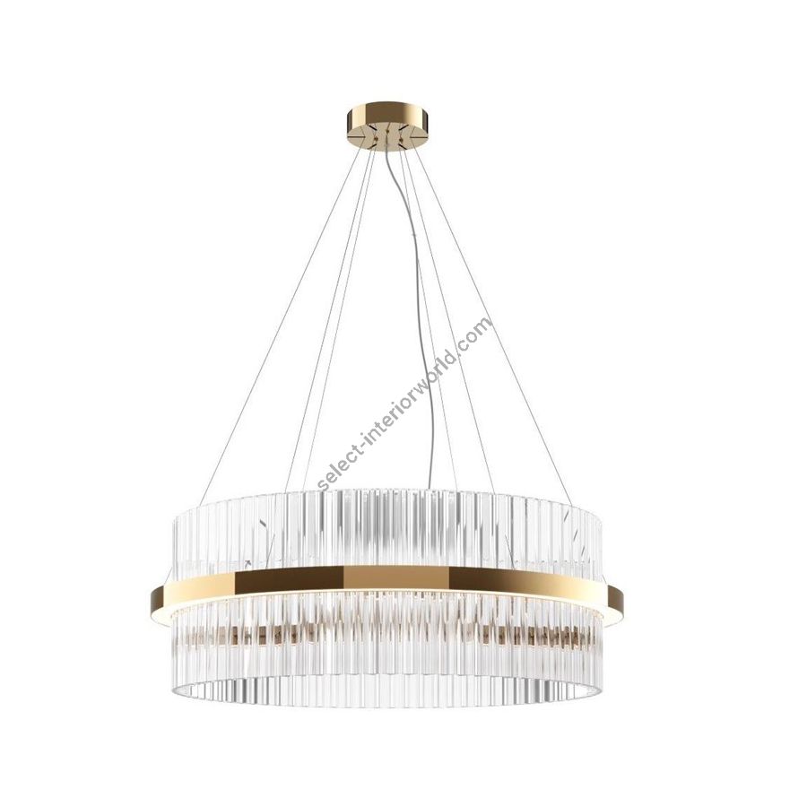 Round chandelier with double Triedro Glass. Lighting item that diffuses the light with great effect in the surrounding environement creating a warm and welcoming atmosphere.