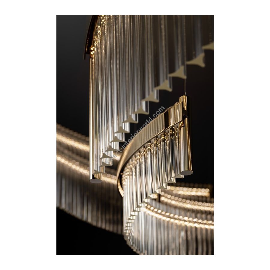 Elegant and refined chandelier with contemporary style and Murano glass, transparent triple prism with double LED lighting. Diameter and height adjustable according to needs. Beautiful and refined, suitable for elegant and stylish homes. The elegant and refined chandelier with a contemporary style is a perfect choice for those who seek a touch of class in their interior decor. Featuring high-quality design, the chandelier boasts a transparent triple prism of Murano glass that provides exceptionally bright and even lighting. The chandelier is equipped with double LED lighting, ensuring excellent color rendering and high energy efficiency. Moreover, the diameter and height of the chandelier are easily adjustable, enabling it to perfectly fit the requirements of any given space. Thanks to this flexibility, the chandelier can be used to create a classy ambiance in a wide range of settings, from elegant homes to conference halls. In summary, the elegant and refined chandelier with a transparent triple prism of Murano glass and double LED lighting is a high-quality product that blends elegance, sophistication, and practicality. Thanks to its versatility, this chandelier is an ideal choice for those who seek to add a touch of style to their interiors.
