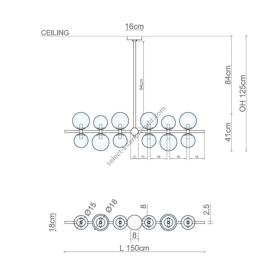 Size:L. 150 cm x 18 cm x OH 125 cm; Kg 20