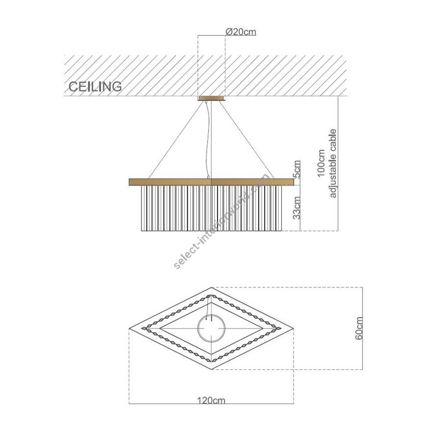 | Size | L 120 cm x 60 cm x H 38 cm ( Steel cable ajustable 100 cm); Kg 35 |
