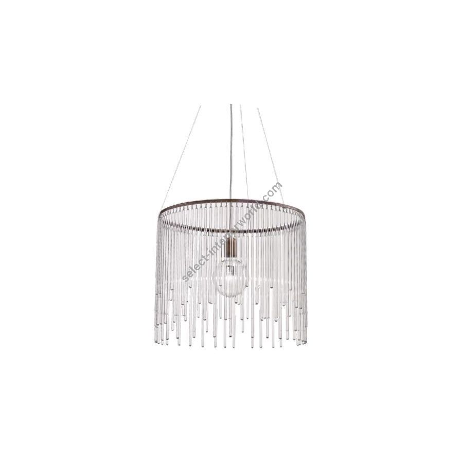 Chandelier with glass small tubes. Lighting item that diffuses the light with great effect in the surrounding environement creating a warm and welcoming atmosphere.