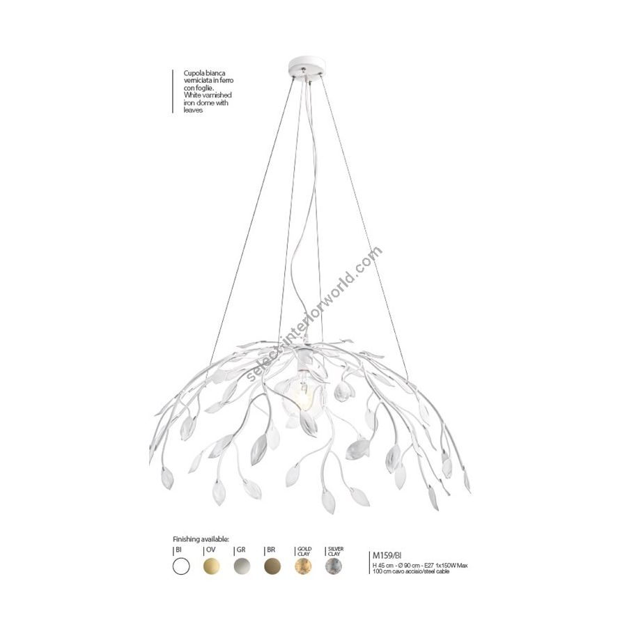 White varnished iron dome with leaves. Lighting item that diffuses the light with great effect in the surrounding environement creating a warm and welcoming atmosphere.